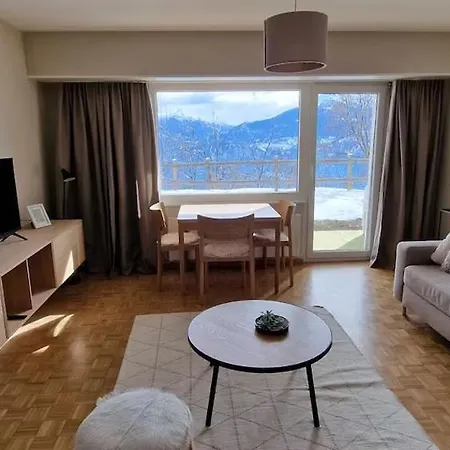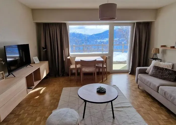 Studio Proche De Tout Avec Magnifique Vue Crans-Montana, som vetter mot trädgården, ligger inom 3 km från Musée du Vin i Crans-Montana. Den 27 m² stora lägenheten har också en terrass med utsikt över bergen.
